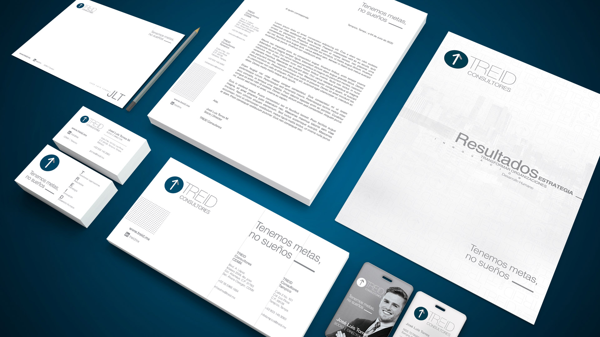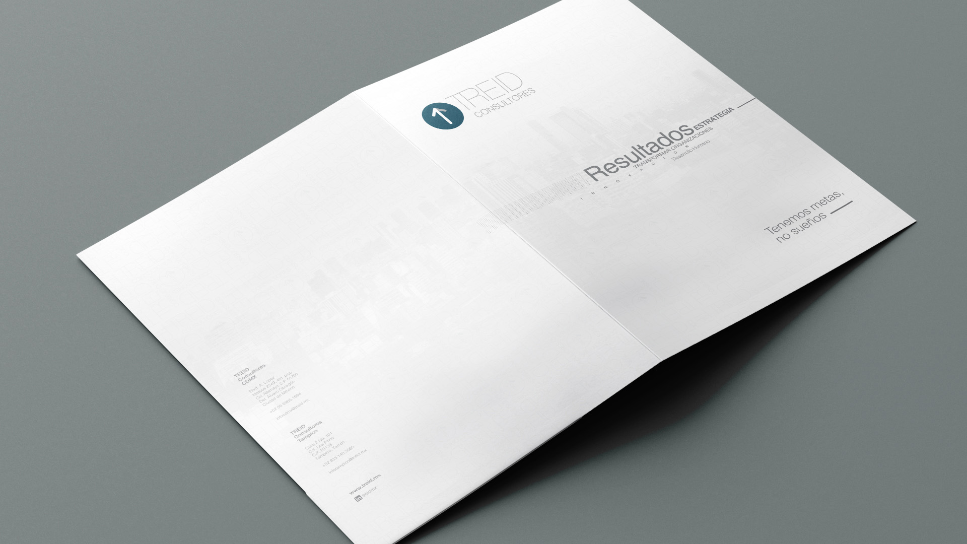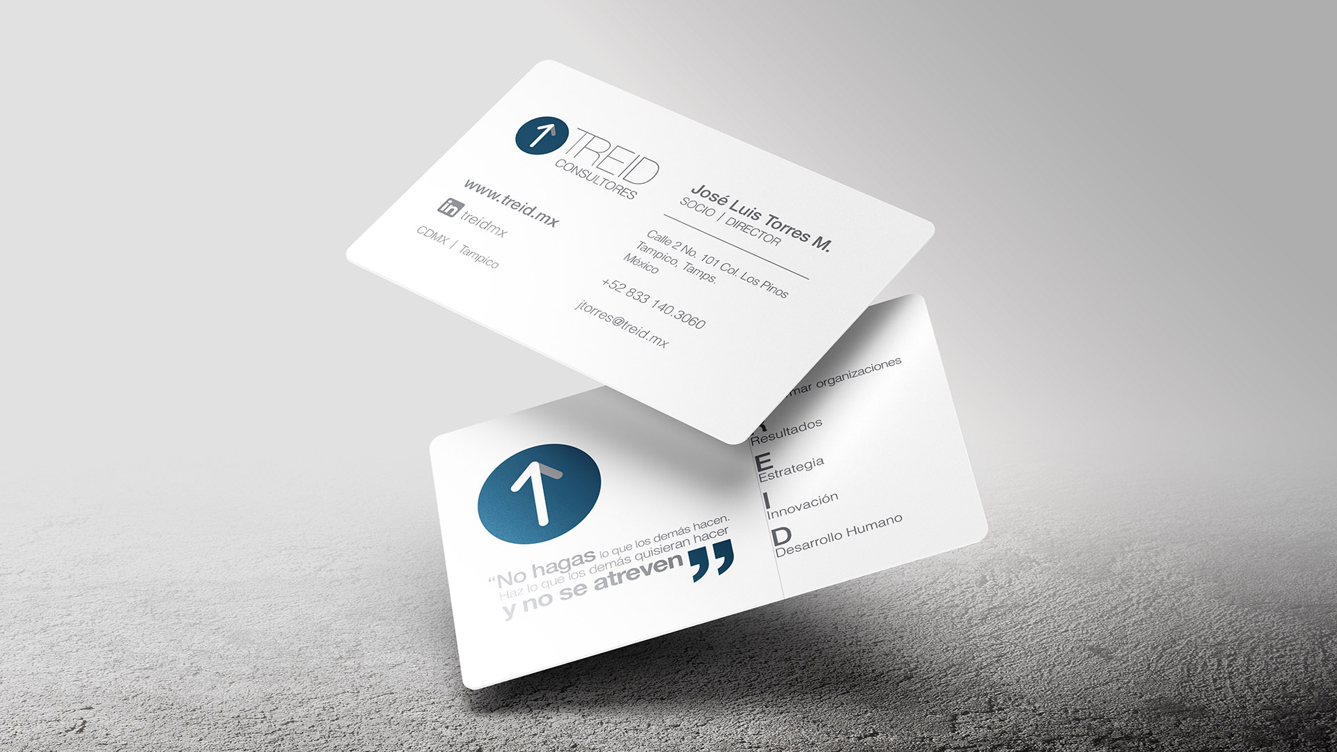 Con esta firma consultora iniciamos desde el proceso creativo del naming; TREID, sintetizando los 4 conceptos en una palabra fonéticamente agradable y gráficamente fácil de leer; la identidad gráfica de la marca se complementó con un elemento universalmente asociado al movimiento, una flecha, apuntando hacia donde se desea llegar; a la cima.
